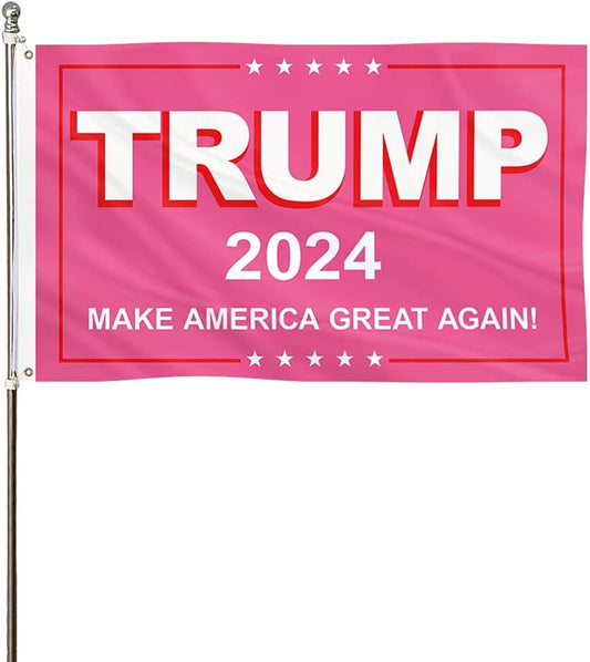 Annlefei Trump 2024 Pink Flag Make America Great Again Flag MAGA Flags Banner For Indoor and Outdoor Decoration 100% Polyester 3X5 FT