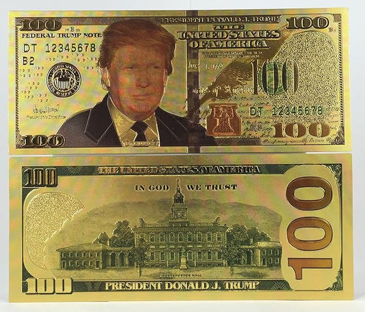 Authentic $100 President Donald Trump Authentic 24kt Gold Plated Commemorative Bank Note Collectors Item by Aizics Mint