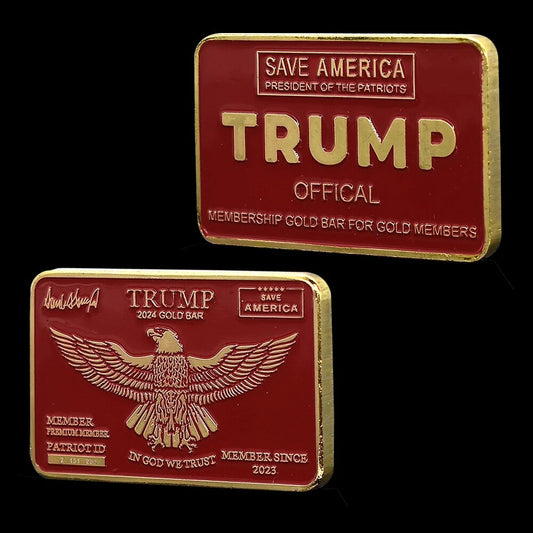 Trump 2024 Gold Bar Red Paint Square Commemorative Coin Trump Returns Medallion Fans Collect Gifts - US - Rare