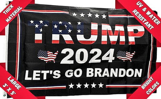 Trump 2024 Flag,Lets Go Brandon- 3 Trump Stickers,FJB Biden Sucks,Lets Go Bandon Flag,3x5 Foot Indoor Outdoor Patriotic Decoration Banner,2 grommets,Double Sided Trump Flag with Vivid Colors FJB